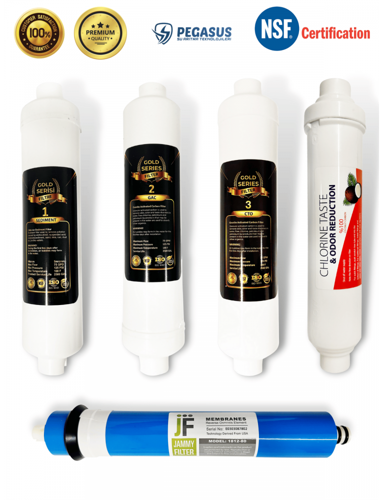 Arıtma cihazınızın performansını ilk günkü haline getiren, membran dahil 5 aşamalı tam değişim seti. Sediment, aktif karbon, membran, post karbon ve mineral filtrelerini içerir. Yıllık bakım için idealdir.
