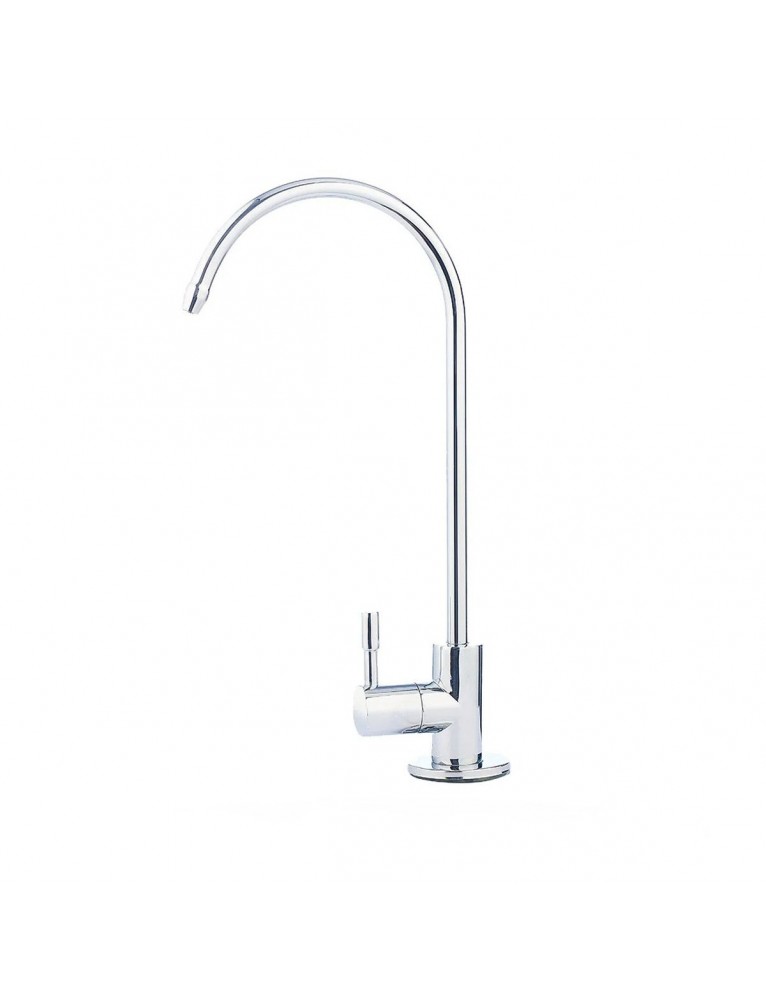 Mutfak tezgahınızın üzerinde şık bir duruş sergileyen, modern tasarımlı krom arıtma musluğu. Paslanmaz çelik gövde yapısı ve 360° döner kolu ile tüm tezgah altı su arıtma sistemleriyle uyumludur.